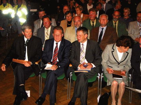 Staatssekretär Freller mit OB Dr. Seelbinder und Rektor Fuchs, dem Super-Veranstalter