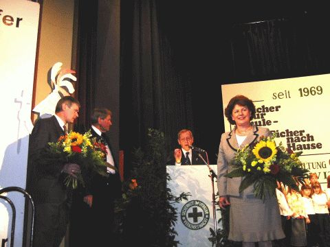 Der Geschäftsführer und Spreher der Gemeinschaftsaktion, Schulamtsdirektor Walter Schwab, bedankt sich bei OB Dr. Birgit Seelbinder und den beiden gastgebenden Rektoren