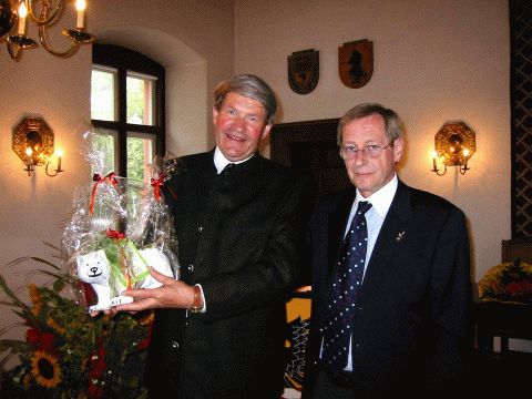 In Dankbarkeit für die hervorragende Veranstaltung bekommt Rektor Fuchs den Freisinger Bären überreicht!
